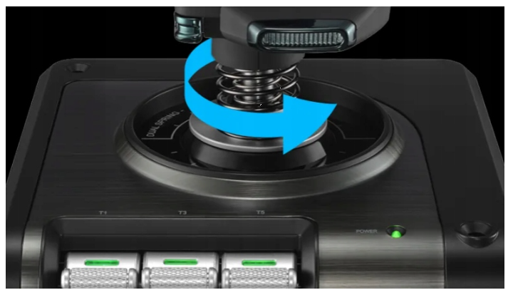 Elementy sterujące obrotem joysticka zapewniają dodatkowy poziom sterowania podczas symulowanej walki. Jeśli wolisz bardziej tradycyjne sterowanie, przełącznik blokady steru kierunku wyłącza funkcje obrotu, ograniczając obsługę do osi X i Y — jest to idealne rozwiązanie do użytku z pedałami steru kierunku Logitech G Flight Rudder Pedals (sprzedawane oddzielnie).