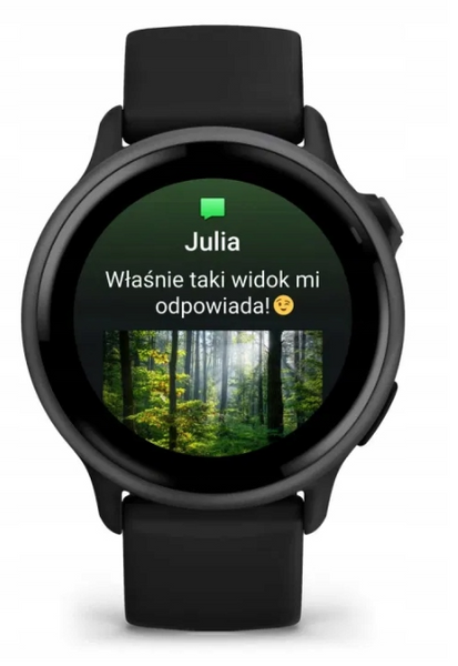 Wiadomości e-mail, wiadomości tekstowe i alerty możesz odbierać bezpośrednio na zegarku sparowanym ze smartfonem iPhone lub Android. W przypadku korzystania ze smartfona z systemem Android możesz odpowiadać na wiadomości tekstowe za pomocą klawiatury na zegarku i wyświetlać odebrane zdjęcia bezpośrednio na ekranie zegarka.