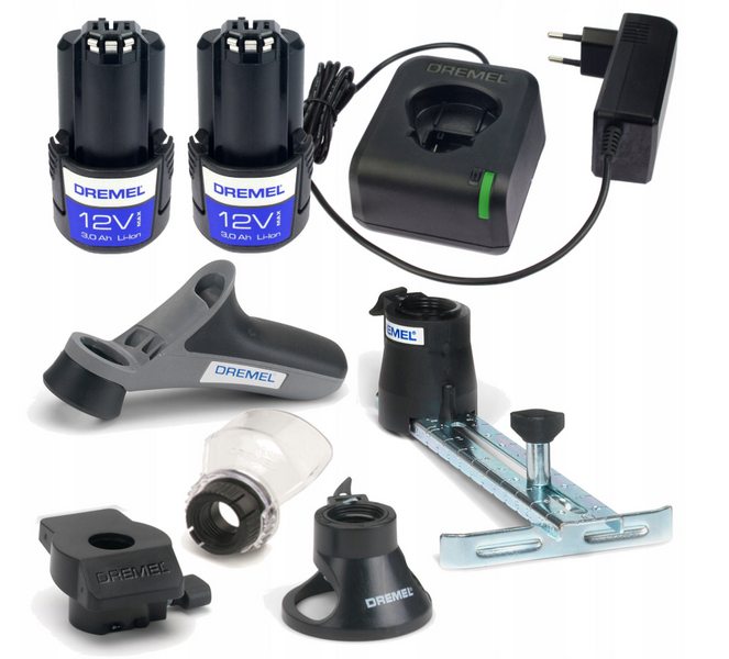W zestawie znajduje się narzędzie wielofunkcyjne DREMEL 8250 wraz z 5 oryginalnymi akcesoriami DREMEL. Wersja DREMEL 8250 z zestawem akcesoriów oferuje wspaniałą jakość za bardzo przystępną cenę.